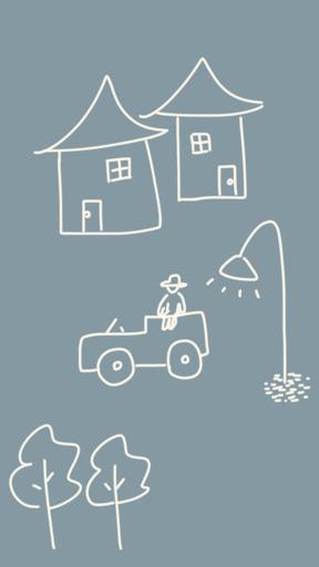 Keywords: car house light tree man vintage car road trip trip road sitting on the car vehicle travel night evening front of house home front window door sketch doodle