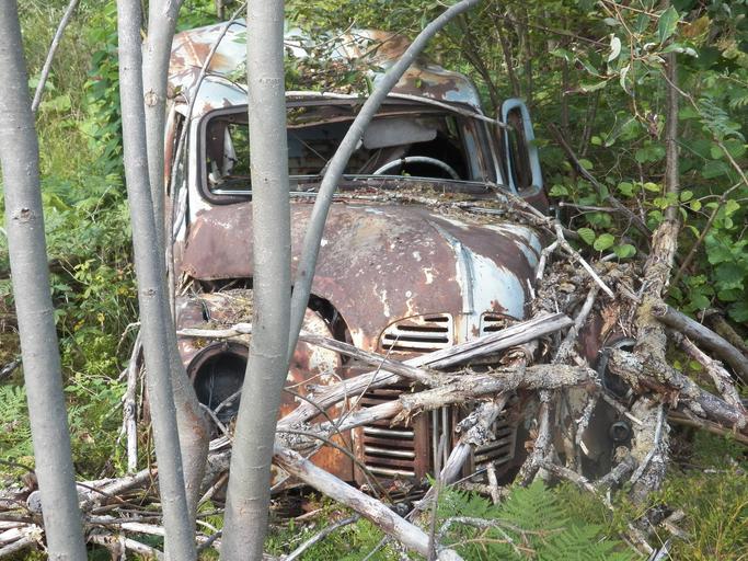 Keywords: car junk rust damaged old automobile abandoned rusty
