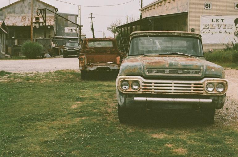 Keywords: car old ford vintage transportation vehicle retro classic wheel lights grass buildings rusty