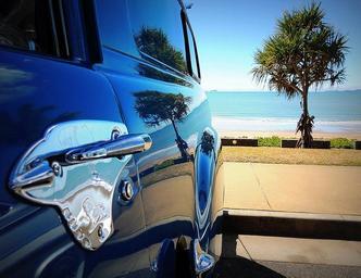 Keywords: car old vintage automobile sea coastline reflection style vehicle