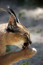 Keywords: caracal michaelis cat predator paw rest licking ears the nose language mustache