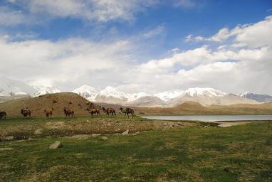 Keywords: caravan camels landscape lake travel nature sky outdoors