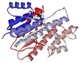 | Keywords: Carbonyl reductase 1WMA.png Ribbon diagram of human carbonyl reductase 1 in complex with NADPH and a small molecule inhibitor 3- 1-tert-butyl-4-amino-1H-pyrazolo3 4-dpyrimidin-3-yl phenol not shown Colored from N- to C-terminus <br>Created using http //www accelrys com/products/downloads/ds_visualizer/index html Accelrys DS Visualizer Pro 1 7 and the GIMP From PDB http //www rcsb org/pdb/cgi/explore cgi pdbId 1WMA 1WMA <br>More information PLoS Biol 3 5 e128 2005 PMID 15799708 10 1371/journal pbio 0030128 Free full text at PubMed Central http //www pubmedcentral gov/articlerender fcgi tool pmcentrez artid 1073692 1073692 and at http //biology plosjournals org/perlserv/ request get-document doi 10 1371/journal pbio 0030128 PLoS website 2007-10-26 Fvasconcellos 17 10 28 October 2007 UTC Oxidoreductases Open Access File of the Day |