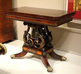 | Keywords: Card table, attributed to Thomas Seymour, carving attributed to Thomas Wightman, Boston, 1816-1817, rosewood, mahogany, birds-eye maple veneer, chestnut, ash, brass and brass powder - Winterthur Museum - DSC01431.JPG en Exhibit in the Winterthur Museum New Castle County Delaware USA Photography was permitted in the museum without restriction This work is in the public domain because the artist died more than 70 years ago 2013-05-08 12 10 49 own Daderot cc-zero Uploaded with UploadWizard Furniture in Winterthur Museum Furniture by John and Thomas Seymour |