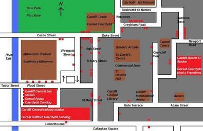 | Keywords: Cardiff city centre basic map.jpg A very basic map showing the main streets and bus routes in Cardiff city centre This map is by no means to scale and many smaller streets have been omitted Brown denotes an attraction red denotes a transport building or structure green denotes parkland blue denotes a river and grey denotes commercial area own original text I created this work entirely by myself 1 2009-05-07 Welshleprechaun talk Welshleprechaun Original upload log en wikipedia Liftarn CommonsHelper page en wikipedia Cardiff_city_centre_basic_map jpg 2009-05-07 00 07 Welshleprechaun 815×529× 65009 bytes <nowiki>Font colour changed to make more visible</nowiki> 2009-05-07 00 00 Welshleprechaun 815×529× 62326 bytes <nowiki> A very basic map showing the main streets and bus routes in Cardiff city centre This map is by no means to scale and many smaller streets have been omitted Brown denotes an attraction red denotes a transport build</nowiki> city map Transport in Cardiff |