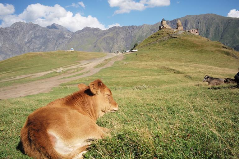 Keywords: cardinals slash cow church mountain nature on a clear day livestock sidewalk summer