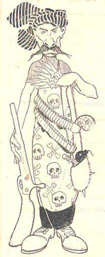 | Keywords: Caricatura de Zapata 13.jpg Leyenda El Modelo Emiliano Todos creían que ya había pasado; pero ha vuelto a ponerse de moda Publicación Multicolor 31 agosto 1911 año 1 núm 23 página 10 Caricaturista Hecho Poco resultado había conseguido el gobierno federal para licenciar a las tropas zapatistas ya que el problema fundamental el reparto de tierra no se había resuelto ocasionando que los campesinos estuvieran vigentes en su lucha armada El caricaturista muestra de figura esbelta vistiendo un conjunto de dos piezas estampado en calaveras de la colección Emiliano misma que es acompañada por cuchillas balas y un fusil PD-old Caricatures of Emiliano Zapata |