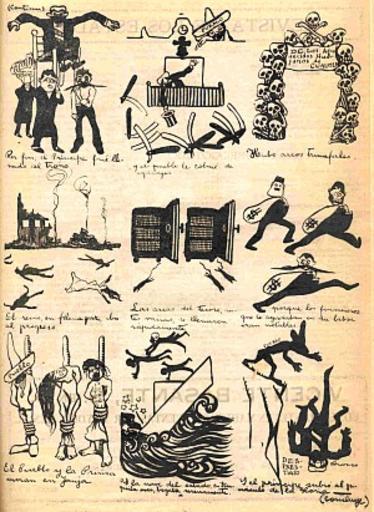 | Keywords: Caricatura de Zapata 16.jpg Leyenda Los dos prÃncipes Por fin el prÃncipe fue llevado al trono y el pueblo le colmó de agasajos “Hubo arcos triunfales El rieno en finelapar iba al progreso Las arcas del tesoro antes vacÃas se llenaron rápidamente porque los financieros que lo ayudaban en su labor eran notables El Pueblo y la Prensa vivÃan en lonja y la nave del estado en tranquila mar bogaba serenamente Y el prÃncipe subió al pináculo de la gloria Hecho El caricaturista con suma ironÃa sigue haciendo un balance de los acontecimientos derivados del maderismo iniciando con el momento en que Francisco I Madero toma protesta como presidente de la República el mal manejo del erario público las dificultades con sus compañeros revolucionarios el trato que le daba la prensa y la consiguiente inestabilidad polÃtica y falta de popularidad que caracterizó buena parte de su régimen El Ahuizote sábado 23 de diciembre de 1911 año 1 número 32 página 13 1911-12-23 Orozco PD-old Caricatures of Emiliano Zapata 1911 cartoons 1910s political cartoons Mexico in the 1910s 1911 in Mexico |
