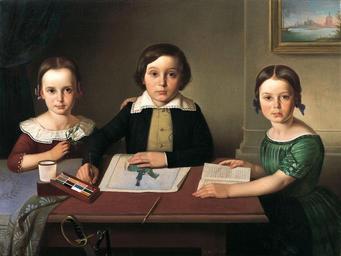 | Keywords: Carl Arend - Die drei Kinder des Herrn C. H. Schulze (1849).jpg 1849 oil canvas cm 76 103 institution Pommersches Landesmuseum accession number object history credit line exhibition history C Arend 1849 ~ lower center signature / date http //ub-goobi-pr2 ub uni-greifswald de/viewer/image/AZ004117/1/ Digitale Bibliothek MV PD-old-100-1923 DEFAULTSORT Arend Carl; Children 1849; Pommersches Landesmuseum Carl Arend painter Paintings in the Pommersches Landesmuseum Greifswald Paintings of children 1840s portrait paintings 1849 paintings |