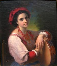 | Keywords: Carl Ehrenberg Italienerin mit Tambourin.jpg Italienerin mit Tamburin de Signiert Carl Ehrenberg Roma 1872 oil on canvas size 62 75 cm http //www altekunst-vienna com/ altekunst-vienna com 1872 Creator Carl Ehrenberg PD-old-auto-1923 1914 Carl Ehrenberg 1872 paintings Women facing right and looking at viewer in art Red clothing in art female 19th-century oil on canvas paintings Romantic paintings of Italian women Portrait paintings of women with tambourines 19th-century paintings location missing |