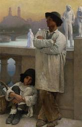 | Keywords: Carl Ernst von Stetten - Junge Bildhauer auf einer Brücke in Paris.jpg Trocadéro im weiteren Hintergrund en Young sculptors on a bridge in Paris the old Trocadero in the distance 1888 oil canvas cm 159 101 5 object history credit line exhibition history Paris Salon Italiens à Paris 1888 no 2491<br/>Dresden Akademiesche Kunst-Ausstellung 1894<br/>Berlin Berliner Kunst-Ausstellung 1894<br/>Pittsburgh Carnegie Art Galleries no 62 C von Stetten Paris 1888 ~ lower right signature and date accession number http //www sothebys com/de/auctions/ecatalogue/2007/19th-century-european-art-n08355/lot 102 html Sotheby's New York 23 Oktober 2007 lot 102 PD-old-auto-1923 1942 Carl Ernst von Stetten Paris in art 1888 paintings Images from Sotheby's |