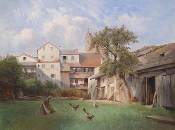 | Keywords: Carl Haunold Hof des Seifensiederhauses in Tittmoning 1907.jpg Hof des Seifensiederhauses in Tittmoning Bayern eigenhändig oil canvas cardboard 43 x 59 cm http //www dorotheum com Dorotheum century 19 Carl Haunold 1832-1911 PD-art-100 Images from Dorotheum Karl Haunold Tittmoning Paintings of ducks |