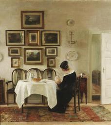 | Keywords: Carl Holsøe Mother and child in a dining room interior.jpg Mother and child in a dining room interior Signed C HOLSÖE Oil on canvas 75 5 x 68 5 cm Creator Carl Holsøe http //www bonhams com/ Bonhams by 1935 Carl Vilhelm Holsøe 1863-1935 PD-old-70 Images from Bonhams Carl Holsøe Dining rooms in art Paintings of building interiors Paintings of paintings | ||||