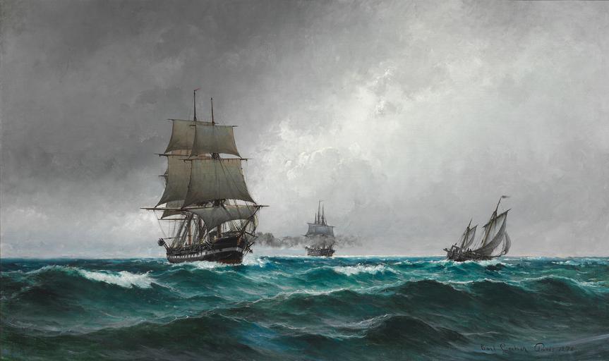 MAKE A MEME View Large Image Carl Locher - Stille aften i Nordsøen med fregatten Jylland (1876).jpg Carl Locher 1851-1915 date 1876 oil on canvas cm 75 125 object history credit line Carl Locher Paris 1876 ~ lower right signature / place / date accession number http ...