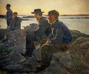 | Keywords: Carl Wilhelm Wilhelmson - On Rocks at Fiskebackskil.jpg Artwork Creator Carl Wilhelmson 1905-1906 oil canvas cm 126 151 Institution Göteborgs konstmuseum accession number object history credit line 574451 PD-old-auto-1923 1928 Paintings by Carl Wilhelmson Paintings in Göteborgs Konstmuseum Paintings in Sweden Paintings of men sitting on rocks outdoors Group portrait paintings Paintings of fishermen at the beach | ||||