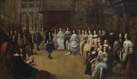| Keywords: Carlos II de Inglaterra e Catarina de Bragança na Old Somerset House - Escola Inglesa (séc. XVII).png en Charles II of England and Catherine of Braganza This scene is likely taking place at Old Somerset House and it depicts one of the balls and amusements held by Queen Catherine after becoming accostumed to the ways of the London court It's visible how some of her ladies-in-waiting still dress according to the Portuguese fashions which was a source of amusement in London pt Carlos II de Inglaterra e Catarina de Bragança Esta cena situa-se provavelmente num interior de Old Somerset House representando um dos bailes e divertimentos organizados por D Catarina após ter-se familiarizado com os hábitos e costumes da Corte londrina É visível a maneira como algumas das suas damas de honor seguiam ainda a moda trazida de Portugal o que causava algum divertimento em Londres century 17 https //www pcv pt/files/leiloes/L289/ec/pt/ /136/ Palácio do Correio Velho English School 17th century other versions Custom license marker 2016 08 11 PD-old-100 Charles II of England Catherine of Braganza Somerset House in art 17th-century paintings Balls in art |