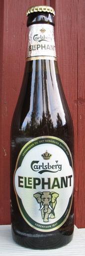 Keywords: CarlsbergElephant.jpg en A bottle of Carlsberg Elephant beer own Miguel Andrade 2013-07-15 Beer bottles green glass Beers of Denmark Carlsberg beer Cc-zero