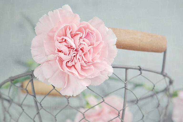 Keywords: carnation flower blossom bloom tender petals pink carnation pink basket close