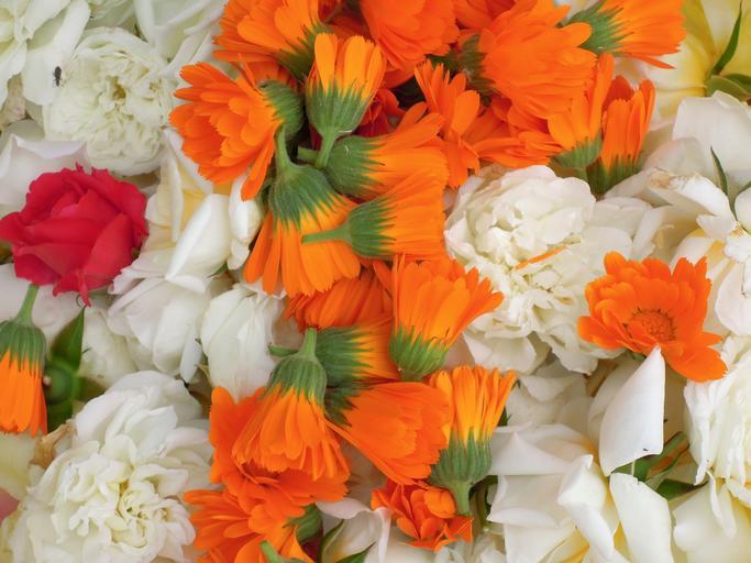Keywords: carnation rosa flowers orange calendula nature spring garden flower plant