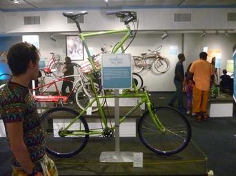 | Keywords: Carnegie Science Center 2011 Drombosky Tall Bike.JPG Tall Bike on display at the Carnegie Science Center in Pittsburgh PA It was constructed by Nick Drombosky in Pittsburgh from three 1990s mountain bikes has a telescoping frame and employs cable steering to control the front wheel 2013-09-29 13 58 46 own Photojunkie No restrictions on publication Uploaded with UploadWizard Carnegie Science Center Tall bikes | ||||