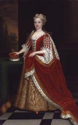 | Keywords: Caroline Wilhelmina of Brandenburg-Ansbach by Sir Godfrey Kneller, Bt.jpg Artwork Creator Godfrey Kneller This is a copy of a portrait of Caroline of Ansbach made by Sir Godfrey Kneller in 1716 now at Buckingham Palace Caroline wear robes of state and rests her hand on her crown as Princess of Wales She would become Queen in 1727 on the death of her father-in-law George I 1716 Oil on canvas cm 97 5 61 9 Institution NPG 529 This set of images was gathered by User Dcoetzee from the National Portrait Gallery London website using a special tool All images in this batch have been confirmed as author died before 1939 according to the official death date listed by the NPG See source website for additional information other versions <gallery>Caroline1683 jpg</gallery> PD-old-100 DEFAULTSORT 1716; Caroline of Ansbach Godfrey Kneller 18th-century portrait paintings in the National Portrait Gallery London Caroline of Ansbach 1716 oil on canvas paintings in the United Kingdom Portrait 1716 portrait paintings from Germany Male 18th-century oil portraits of standing women at full length Checkered floors in portrait paintings Ermine clothing in art Ermine crowns Fur fashion in 1716 Paintings by Godfrey Kneller with fur Portrait paintings of women holding crowns Portrait paintings of women with tables Portraits with window at the background State robes of British royalty |