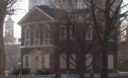 | Keywords: CarpentersHall04.jpg Carpenters ™ Hall built 1770-1774 by the Carpenters ™ Company of the City and County of Philadelphia still the owner meeting place of the First Continental Congress Autumn 1774 first home of the Bank of the United States 1791 and meeting place of many other early American organizations Architect Robert Smith in the Georgian style Street address 320 Chestnut Street Philadelphia PA 19106 National Register of Historic Places and National Historic Landmark 1970 North front and West side view from South 4th Street Own 2009-03-26 Davidt8 Own work all rights released Public domain Carpenters' Hall 4th Street Philadelphia |