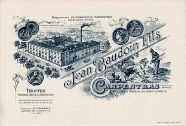 | Keywords: Carpentras Jean Baudoin Truffes fraîches.jpg fr Jean Baudoin de Carpentras truffes du Mont-Ventoux 2013-02-28 05 04 47 Scan old card Unknown early 1900s Custom license marker 2013 02 28 Anonymous-EU Uploaded with UploadWizard Truffles from Mont Ventoux Preserved truffles |