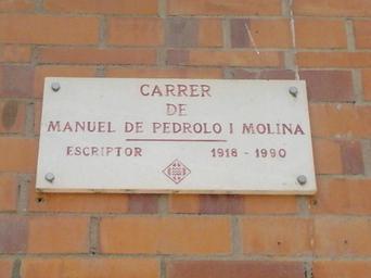 | Keywords: Carrer de Manuel de Pedrolo (Girona, Catalonia).jpg Manuel de Pedrolo's street in Girona Manuel de Pedrolo a Girona own Jove 9/6/2014 Streets in Girona Manuel de Pedrolo i Molina Plaques in Catalonia Street signs in the province of Girona 2014 in Girona June 2014 in Catalonia |