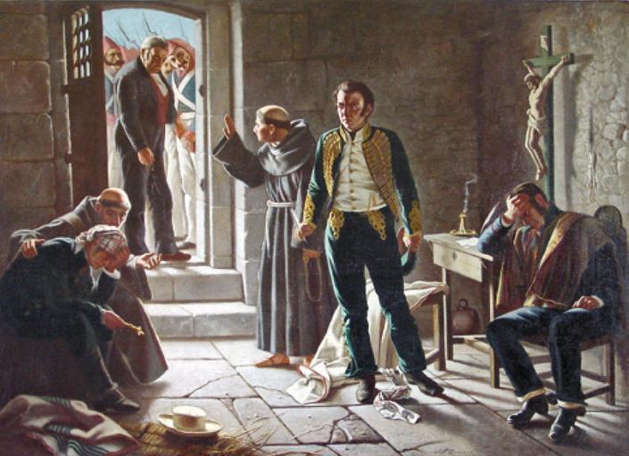Keywords: Carrera por J.F.Gonzalez.jpg Artwork Creator Juan Francisco González Creator Juan Manuel Blanes Copia con leves cambios en el dibujo del óleo original del pintor uruguayo Juan Manuel Blanes realizada por el pintor chileno Juan Francisco Gonzalez La escena pinta los últimos momentos de Carrera antes de ser fusilado en Mendoza el 4 de septiembre de 1821 El sacerdote que está a sus espaldas conminando a los soldados que esperen a que Carrera termine de hablar es José Benito Lamas; a la derecha desolado está el coronel José María Benavente -a quien se le conmutará la pena de muerte gracias a las gestiones de su influyente hermano Mariano- y a la izquierda asistido por otro franciscano el coronel Felipe Álvarez between 1873 1877 oil on canvas cm 100 127 5 Colección del Banco de Chile object history Fue comprada por el Banco de Chile a fines de 2005 credit line La copia hecha por González ingresó al Laboratorio de Pintura del Centro Nacional de Conservación y Restauración el 7 de noviembre de 2005 después de ser adquirida por el Banco de Chile; el proceso de restauración finalizó en 2006 El original de Blanes se encuentra actualmente en el depósito del Museo Nacional de Artes Visuales de Montevideo accession number www dibam cl http //www dibam cl/Recursos/Contenidos/Centro 20de 20Conservaci C3 B3n/archivos/07 20los 20 C3 BAltimos 20momentos pdf PD <gallery> File Ultimos momentos Carrera jpg Dibujo de Creator Luis Fernando Rojas File Araya Agustin orig de Blanes - Los ultimos momentos de JM Carrera jpg Copia hecha por Agustín Araya </gallery> PD-old-auto 1933 Juan Francisco González Juan Manuel Blanes José Miguel Carrera José Benito Lamas Death in Argentina