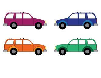 Keywords: cars colorful vehicles road transportation automobiles four suv sport utility vehicles parked face to face pink blue orange green