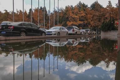Keywords: cars pond reflection autumn