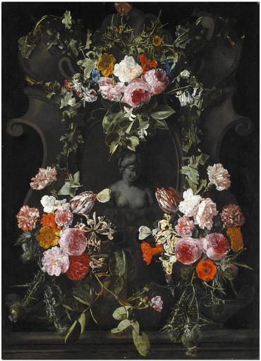 Keywords: Carstian Luyckx - A female stone bust set in a stone cartouche, surrounded by a garland of flowers including roses, parrot.jpg Artwork Creator Carstian Luyckx en A female stone bust set in a stone cartouche surrounded by a garland of flowers including roses parrot tulips roses a poppy and thistles 1640 - 1658 http //www sothebys com/fr/auctions/ecatalogue/lot 174 html/2006/old-master-paintings-day-l06032 Oil canvas size cm 86 6 62 7 object history credit line bears signature lower right J P Van ThiELEN Sold at Sotheby's 6 July 2006 London lot 174 accession number PD-old-100 Carstian Luyckx 1gar Garland of flowers frame in paintings |