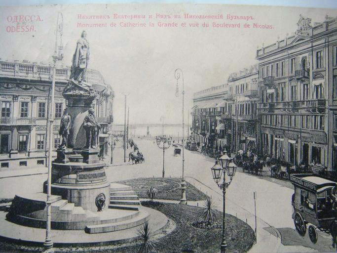 Keywords: Carte Postale Monument de Catherine la Grande et vua du Boulevard de Nicolas.jpg en Open letter post card with view to Catherinskaya square and Nikolaev boulevard in Odessa Early XX century ru Отк ытка начала XX века с видом на Екате ининскую площадь и иколаевский бульва в г Одесса own HOBOPOCC Postcards of Odessa Katerynynska Ploshcha Founders of Odessa monument PD-RusEmpire