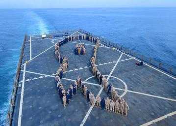 | Keywords: Carter Hall walks for Sexual Assault Awareness Month 130328-N-XZ031-049.jpg en Sailors and Marines form a ribbon in support of Sexual Assault Awareness Month aboard the amphibious dock landing ship USS Carter Hall LSD 50 Carter Hall is deployed as part of the Kearsarge Amphibious Ready Group with embarked Marines from the 26th MEU which is on a scheduled deployment in support of maritime security operations and theater security cooperation efforts in the 6th Fleet area of responsibility AOR U S Navy photo by Mass Communication Specialist 3rd Class Chelsea Mandello/Released 2013-03-28 Petty Officer 3rd Class Chelsea Mandello https //www dvidshub net/image/899449 130328-N-XZ031-049 2013-04-02 20 12 NORFOLK VA US PD-USGov-Military-Navy Sexual Assault Awareness Month USS Carter Hall LSD-50 Images from DoD uploaded by Fæ |