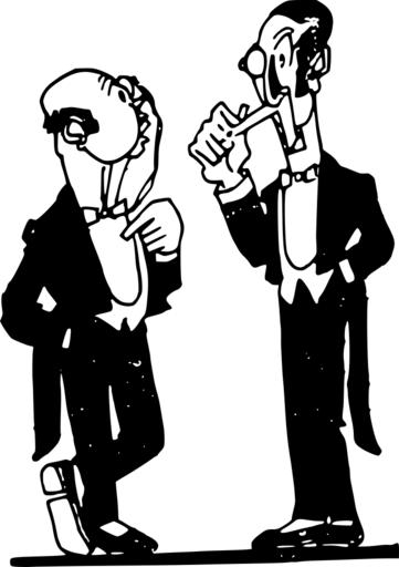 Keywords: cartoon gentlemen gents man men people standing talking tuxedo