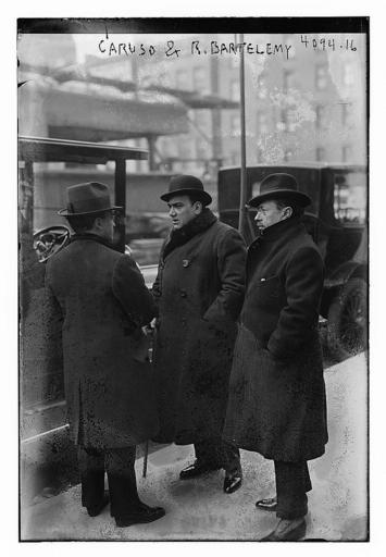 | Keywords: Caruso & R. Bartelemy (LOC) (15333105943).jpg Bain News Service publisher Caruso R Bartelemy between ca 1915 and ca 1920 1 negative glass ; 5 x 7 in or smaller Notes Title from unverified data provided by the Bain News Service on the negatives or caption cards Forms part of George Grantham Bain Collection Library of Congress Format Glass negatives Rights Info No known restrictions on publication Repository Library of Congress Prints and Photographs Division Washington D C 20540 USA http //hdl loc gov/loc pnp/pp print hdl loc gov/loc pnp/pp print General information about the Bain Collection is available at http //hdl loc gov/loc pnp/pp ggbain hdl loc gov/loc pnp/pp ggbain Higher resolution image is available Persistent URL http //hdl loc gov/loc pnp/ggbain 23515 hdl loc gov/loc pnp/ggbain 23515 Call Number LC-B2- 4094-16 https //www flickr com/photos/library_of_congress/15333105943/ Caruso R Bartelemy LOC LOC-image ggbain 23515 https //www flickr com/people/8623220 N02 The Library of Congress http //www loc gov/rr/print/195_copr html noknown The Library of Congress Flickr Commons PD-Bain The Library of Congress http //flickr com/photos/8623220 N02/15333105943 2015-02-15 03 03 12 pd Enrico Caruso |