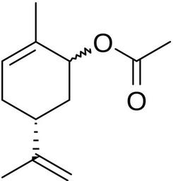 Keywords: Carvyl acetate.svg Chemical structure of cis/trans-carvyl acetate Own 00 18 17 May 2016 UTC Ed Edgar181 Acetate esters Monoterpenes