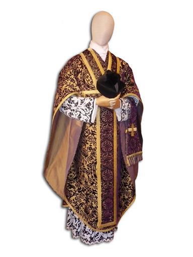| Keywords: Cas-invocabit-01.jpg en Borromaeo-style chasuble in silk cutted velvet fr Chasuble borromée en velour coupé de soie it Casula borromea in soprarizzo di seta Own Design Pietro Siffi Copyright Ars Regia - www ars-regia com PermissionOTRS 2009092310033148 Pietro Siffi GFLD Maniples vestment Chasubles Ars Regia Purple vestments |
