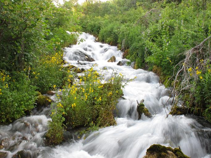 Keywords: cascade springs water fall rocks flowers white green yellow stream river tumble natural nature landscape flowing wild park stones motion scenery travel utah foliage outdoors environment