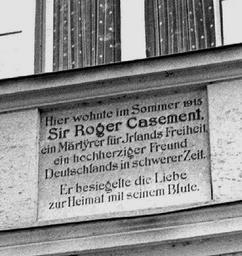 | Keywords: Casement plaque in Riederau, Bavaria, Germany.jpg Image of a Roger Casement plaque on a guest-house in Riederau a small village on Lake Ammersee Bavaria sw of Munich Germany<br> which commemorated his stay there during the Summer of 1915 The text translated reads <br> Here resided in Summer 1915 Sir Roger Casement a martyr for Ireland's freedom <br> a magnanimous friend of Germany in difficult times He sealed the love of country with his blood own Osioni June 2008 original upload log page en wikipedia Casement_plaque jpg 2008-06-01 20 28 Osioni 638×675× 148495 bytes <nowiki>Same image but with altered focus on plaque and lesser inclusion of window above it </nowiki> 2008-05-24 19 15 Osioni 638×931× 183961 bytes <nowiki>Roger Casement plaque on a house in Riederau a small village on the Ammersee lake in Bavaria sw of Munich which commemorated his stay there during the Summer of 1915 The image is all my own work taken around 1980 Licencing Public domain </nowiki> Roger Casement Here-lived plaques in Germany Plaques referencing 1915 History of Dießen am Ammersee Riederau Dießen |