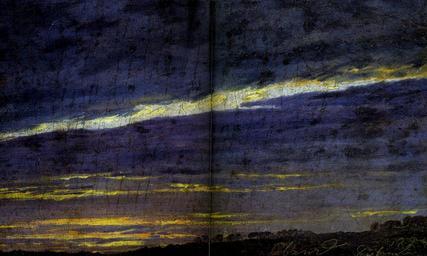 | Keywords: Caspar David Friedrich - Abendlicher Wolkenhimmel (1824).jpg Artwork Q18602486 creator Caspar David Friedrich title Abendlicher Wolkenhimmel / Abend Ciel nuageux nuit / Nuit Nightly cloudy sky / Evening 1824-09 oil canvas cm 12 5 21 2 Belvedere accession number 2379 http //digital belvedere at/emuseum/view/objects/asitem/search 0040/52/primaryMakerAlpha-asc/dateBegin-asc t state flow d7cb7528-95f0-41b4-80c9-d3caee12eb86 Österreichische Galerie Belvedere Vienna object history 1923 Widmung Kommerzialrat Franz Josef Honig credit line langSwitch Dat und bez žAbend September 1824 Dated and inscribed Abend translated Evening September 1824 ~ lower right http //nevsepic com ua/art-i-risovanaya-grafika/page 1 8238-caspar_david_friedrich_26kaspar-david-fridrih-xixe-caspar-david-friedrich-240-rabot-2-chast9-mb-2 html nevsepic com ua http //digital belvedere at/emuseum/media/view/Objects/8179/14467 t state flow ebc040f3-fe8a-4139-85ad-feddab828304 PD-old-100 DEFAULTSORT Caspar David Friedrich Abendlicher Wolkenhimmel Belvedere 1820s paintings by Caspar David Friedrich 1824 Abendlicher Wolkenhimmel Belvedere Paintings by Caspar David Friedrich in the Österreichische Galerie Belvedere 1824 paintings |