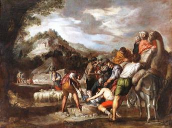 | Keywords: Castillo-jose vendido.jpg La obra representa el momento en que José hijo del patriarca hebreo Jacob fue vendido por sus propios hermanos a unos tratantes de esclavos debido a la envidia que sentían hacia él circa 1655 1660 oil on canvas Size cm 145 109 Institution Museo del Prado https //www museodelprado es/coleccion/obra-de-arte/jose-vendido-por-sus-hermanos/75f0afb5-ca5d-429c-aa8d-85e80a90b262 accession number P00952 https //content1 cdnprado net/imagenes/Documentos/imgsem/75/75f0/75f0afb5-ca5d-429c-aa8d-85e80a90b262/a9be2143-5bfc-4001-99b8-3cdf251ffaff jpg PD-old-100 Joseph sold by his brothers Paintings of Joseph son of Jacob in Spain 17th-century paintings of Joseph son of Jacob Paintings by Antonio del Castillo in the Prado Museum 17th-century paintings in the Prado Museum People with camels in art 17th-century religious paintings in Spain 1650s paintings in the Prado Museum Paintings of people in nature |