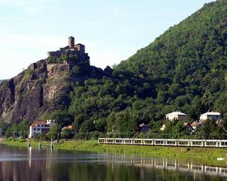 Keywords: castle architecture historic landmark sky clouds summer spring forest trees river water reflections buildings mountains scenic country countryside