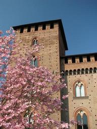 Keywords: castle building architecture old ancient palace medieval fortress landmark sky historical historic flower bloom tree pavia italy