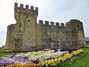 Keywords: castle flowers historic tower medieval landmark facade wall architecture old