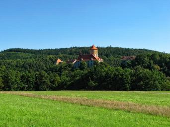 Keywords: castle historical building woods blue sky summer sunny day landscape brno prigl colors colorful