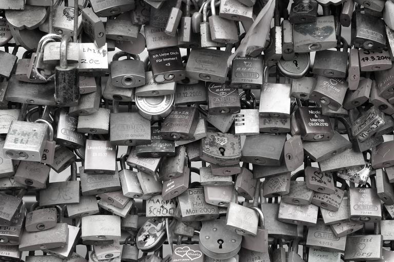 Keywords: castle love love locks loyalty padlocks promise romantic fence love symbol close combines luck pair connection heart structure black white romance cologne valentine's day before engagement
