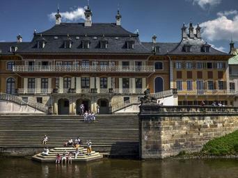 Keywords: castle pillnitz dresden summer terrace blue sky staircase terrace shores