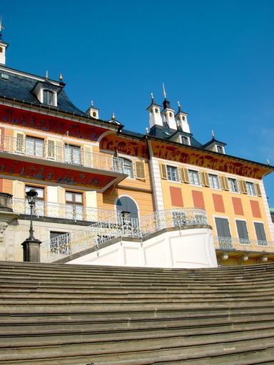 Keywords: castle pillnitz terrace shores staircase stone steps stairs gradually stone sky blue