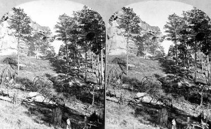 | Keywords: stereoscopic stereophotography stereophotographs historical usgs history geology mapping black and white blackandwhite bnw stereograph blackandwhite monochrome outdoor black and white Castle Rocks on the Divide, near Monument. El Paso County, Colorado. 1874. (Stereoscopic view similar to 1078) Castle Rocks on the Divide, near Monument. El Paso County, Colorado. 1874. (Stereoscopic view similar to 1078) | ||||